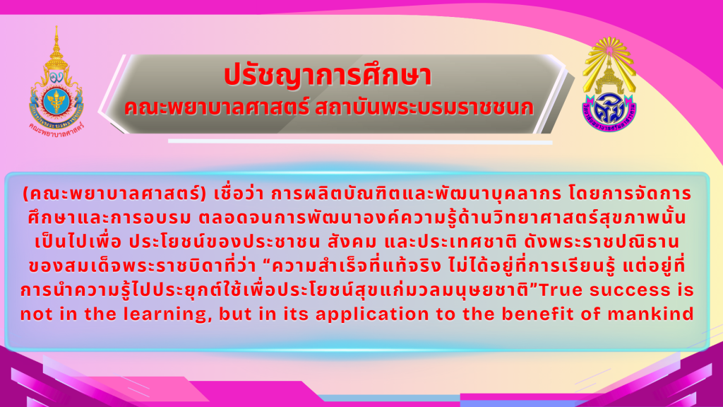 • ปรัชญาการศึกษา คณะพยาบาลศาสตร์ สถาบันพระบรมราชชนก